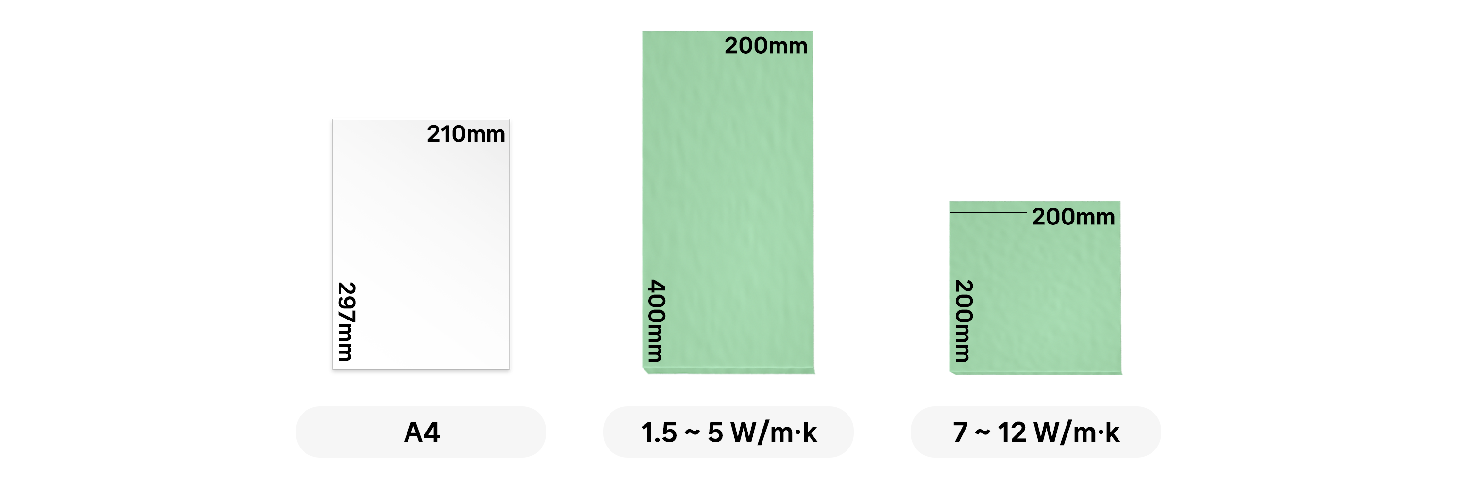 - 1.5 W/m·K to 5 W/m·K: 200 x 400 (mm)