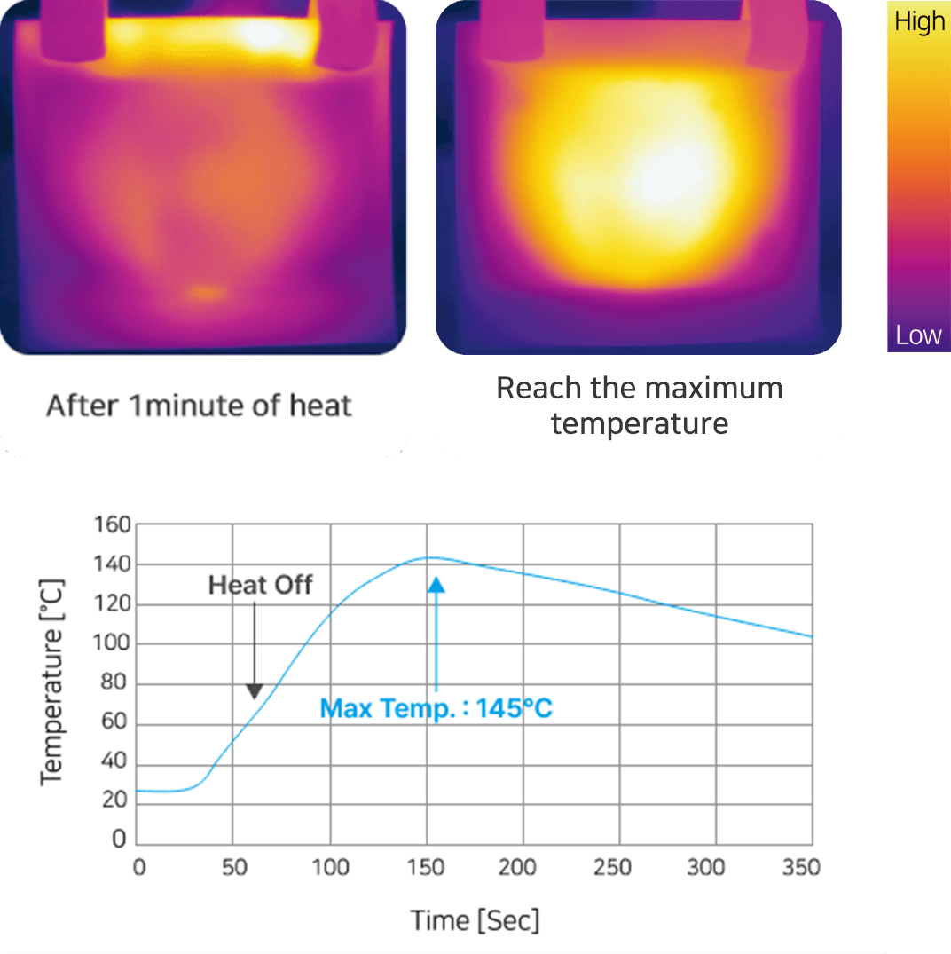 Test Method : Test Method : The backside temperature was measured by bringing the sample into contact with the high temperature plate under a constant load