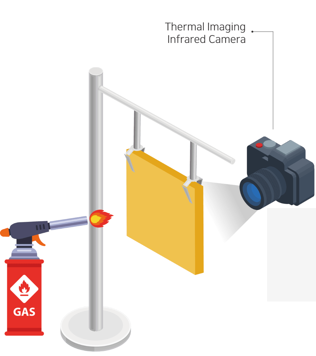 - 측정 방법 : 토치를 이용하여 일정 거리에서 1분 동안 가열했을 때의 PAD 배면 온도 측정